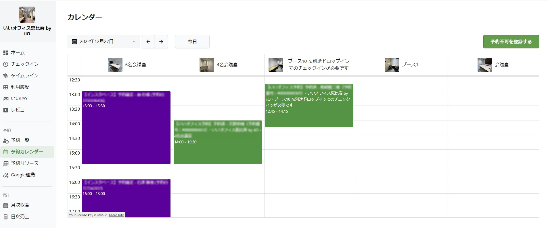 予約機能の活用で、個室や会議室の予約も無人で対応可能