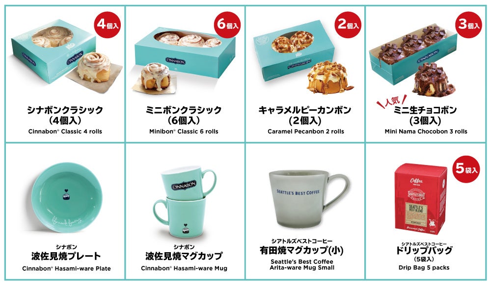 また、人気のシナボングッズや、「シナボン」と相性が抜群の「シアトルズベストコーヒー」のドリップバッグコーヒーなど、豊富に取り揃えております。