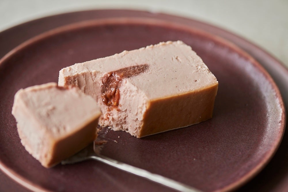 濃厚なピスタチオの生地にピーカンナッツのプラリネを忍ばせた贅沢な味わいのフレーバー。ホリデーシーズンの煌めきをイメージした緑色の限定Boxに包んでお渡しします。おすすめの食べ方は、ピスタチオとプラリネが織りなす濃厚な旨味とコクを楽しめる全解凍。冷凍または半解凍の状態でケーキをカットし、お皿の上でプラリネが溶けていくのを楽しみながらお召し上がりください。