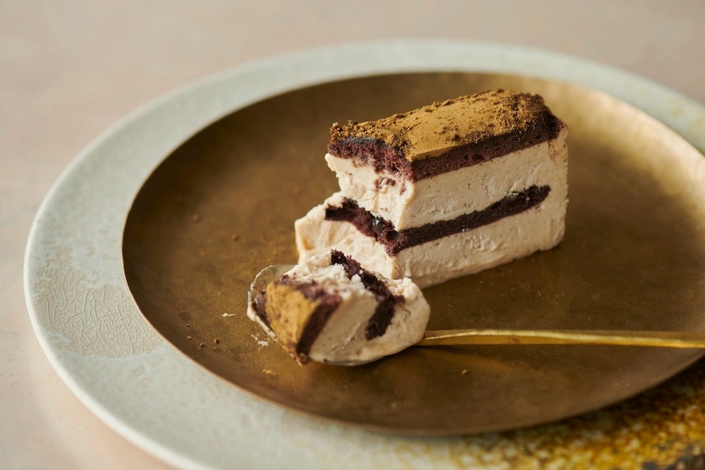 ムースのように淡い口溶けのティラミスに、チャイのスパイシーで香り豊かな味わいを表現したフレーバー。冷たい生クリームにウバ茶を加えて火にかけ、香りを丁寧に抽出。シナモン、カルダモン、クローブは、焦がしバターや生クリームとともに加熱することでスパイシーな香りをより一層引き出しました。生地、クリーム、生地に染み込ませるシロップそれぞれにスパイスを使い、シナモンの甘さ、カルダモンの爽やかさ、クローブの香ばしさをバランスよく組み合わせることで、チャイの味わいを引き立たせています。ウバ茶の旨味とスパイスの豊かな香りを、ティラミスの淡い口溶けとともにご堪能ください。