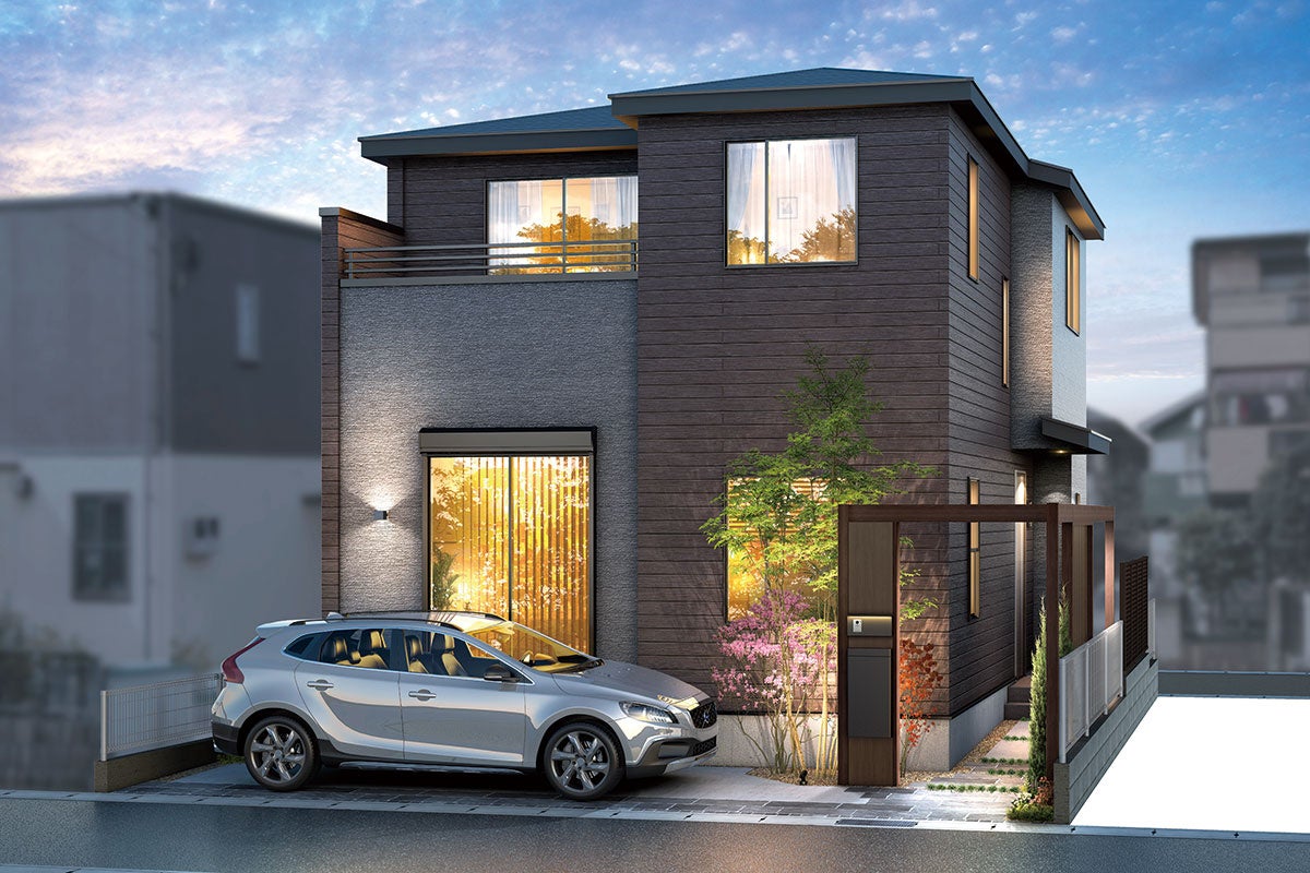敷地面積103m2のゆとりと南側道路に面した開放的な立地。南側にカースペースを設けることで、明るい陽光と爽やかな風を住まいに呼び込みます。