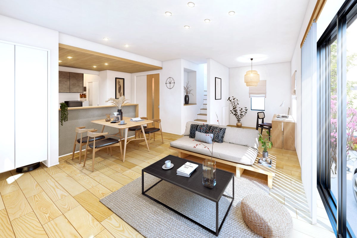 また、間仕切りの扉や壁を追加して、リビングにワークスペースをつくったり、2階の洋室を2部屋に分けたりと、ライフスタイルに合わせて変更できます。(有料オプション)