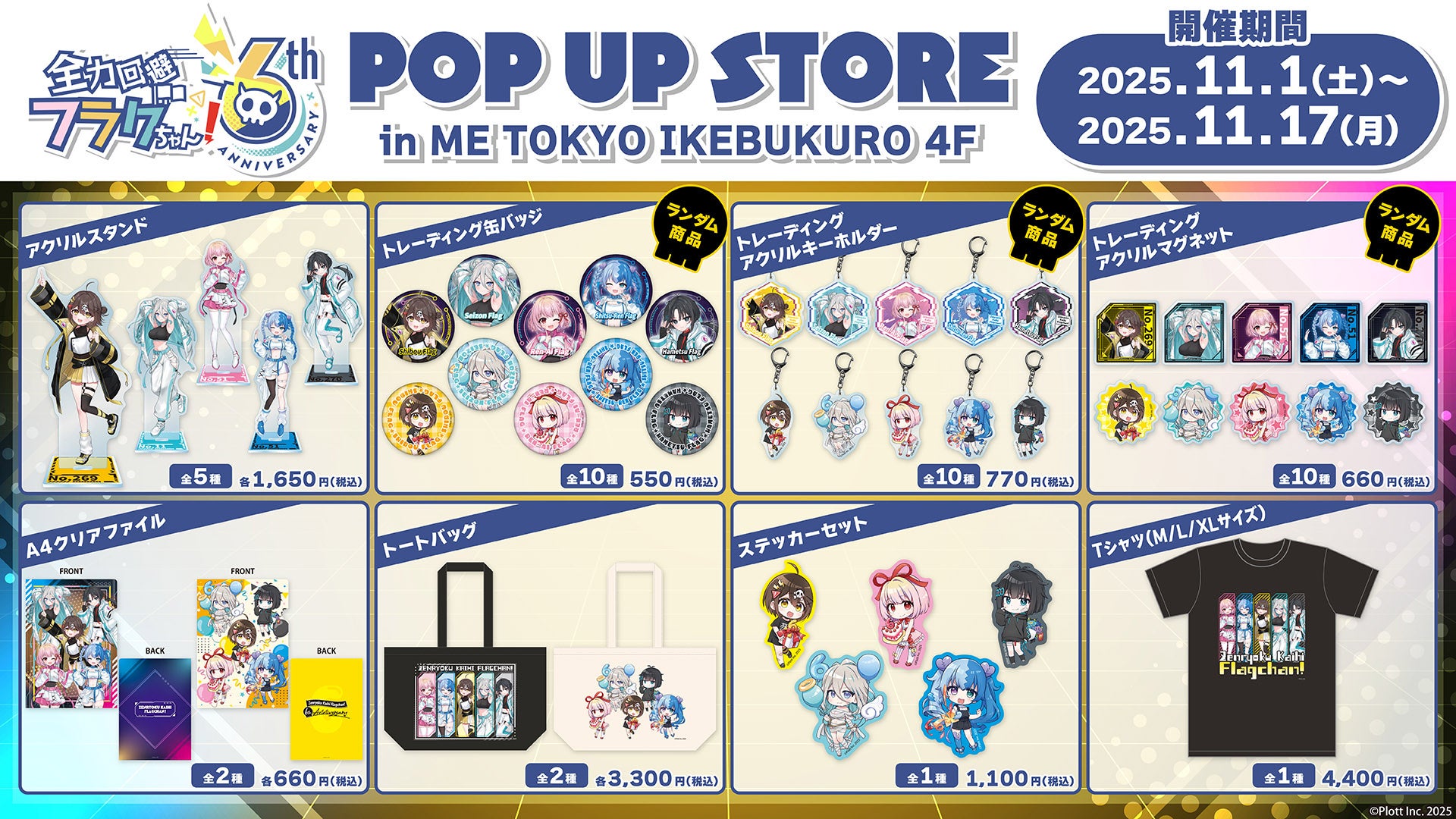 IPコンテンツの企画・制作・ビジネス展開を行う株式会社Plott(本社:東京都千代田区、代表取締役:奥野翔太、以下 「Plott」)は、ショートアニメ『全力回避フラグちゃん!』の6周年を記念したプロジェクトの一環として、2025年11月1日(土)より「ME TOKYO IKEBUKURO」にてPOP UP STOREを開催することをお知らせいたします。