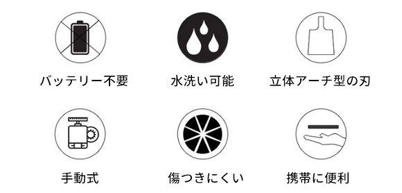 - Point03:バッテリーなし-充電不要でいつでもどこでも気軽にカットできる手動式