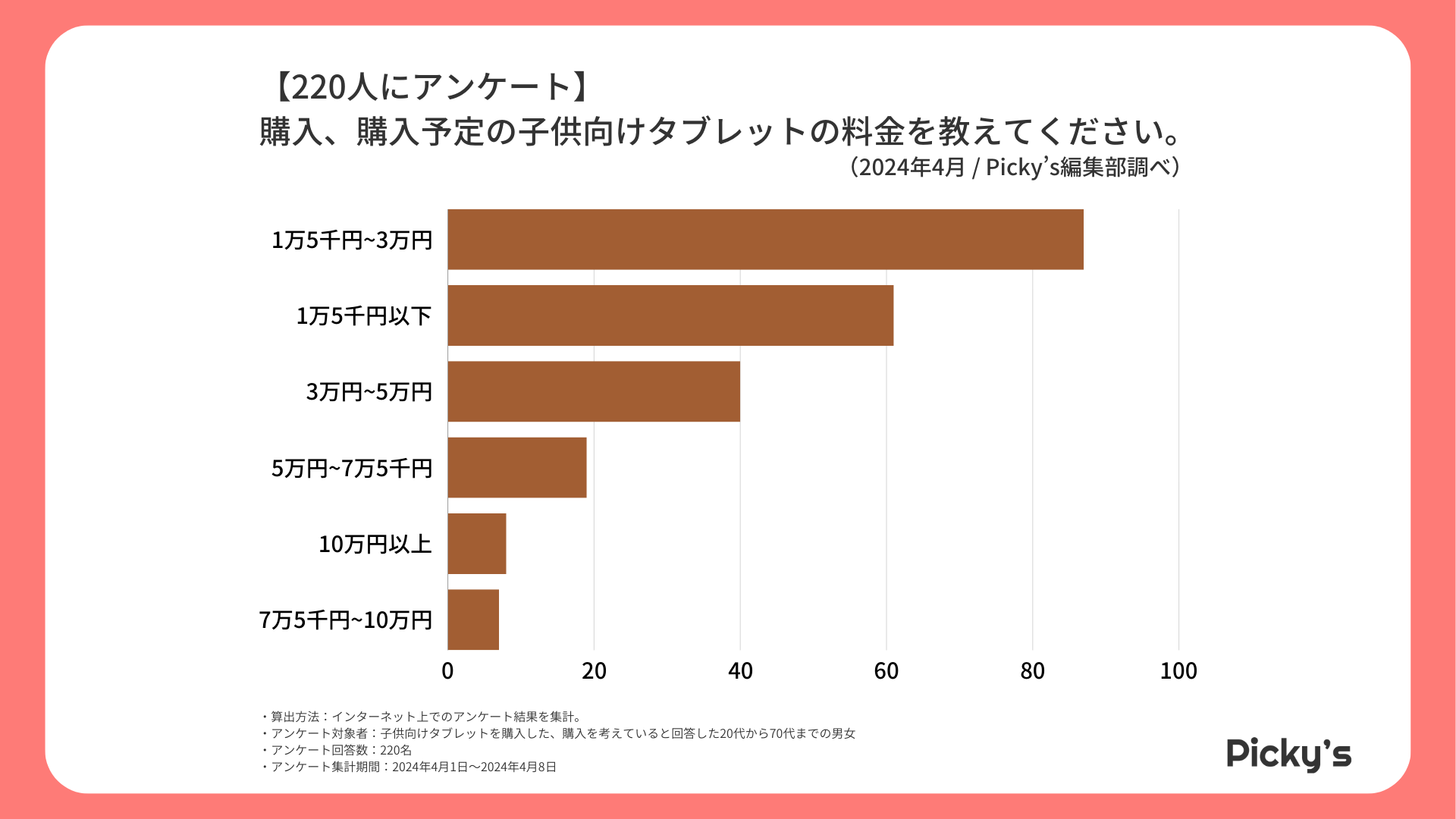 【220人にアンケート】購入した、購入を考えている子供向けタブレットは?用途・選ぶポイント・価格帯などを調査しました
