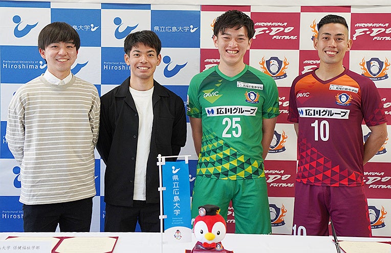 【県立広島大学】初の学部協定!日本フットサルリーグ「広島エフ・ドゥ」の鈴木選手・岩田選手の調印式出席が決定しました