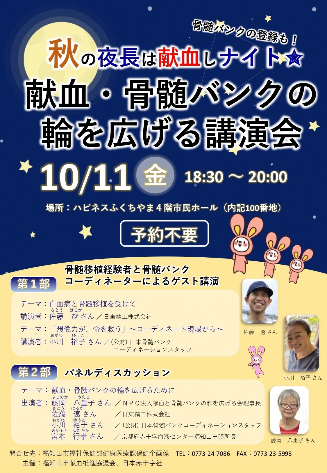 骨髄バンクや献血をもっと身近に。京都府福知山市が市民向けイベントで啓発献血・骨髄バンクの輪を広げる講演会 同時開催!市内初、お仕事後にも立ち寄りやすい“ナイト献血”