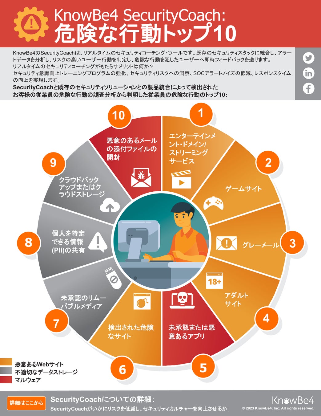 本調査結果のポイントをまとめたPDF(英文)をご希望の方は、次のURLをアクセスしてください。https://www.knowbe4.com/hubfs/SecurityCoach-Top-10-Risky-Behaviors-Infographic.pdf