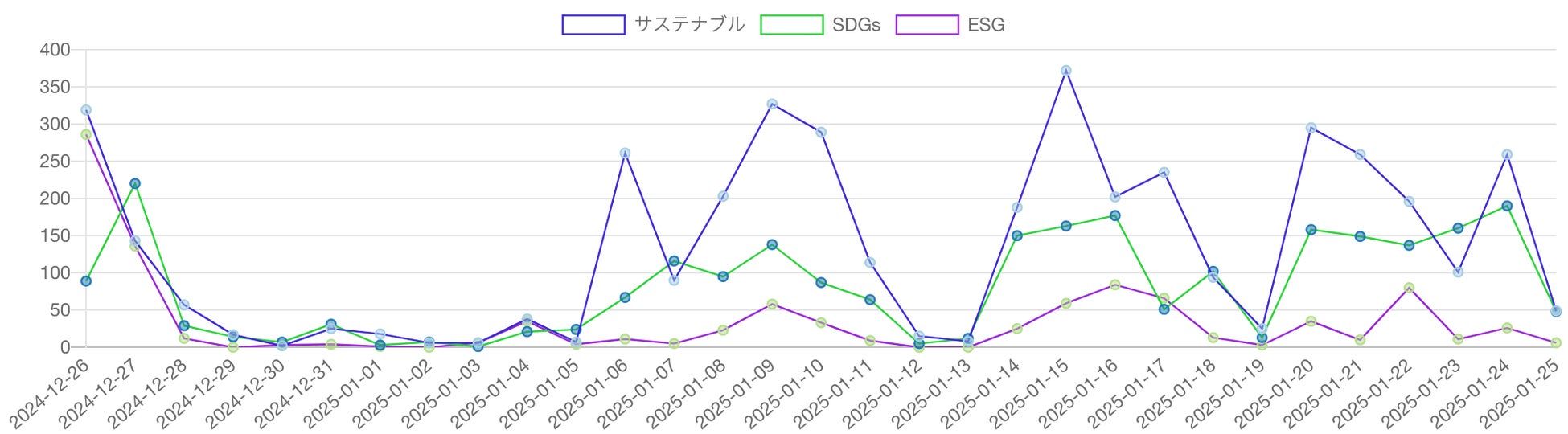 株式会社トドオナダ(代表取締役社長 松本泰行)は、2024年12月26日〜2024年1月25日までのSDGs・ESG・サステナビリティに関するウェブニュースについて調査・分析いたしました。4,000以上のWEBメディアをモニタリングできるPR効果測定サービス「Qlipper」( https://qlipper.jp/ )のデータに基づいた調査結果です。