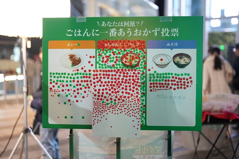 会場内の投票コーナーにて「ごはんに一番あうおかず投票」を行いました。丸大スンドゥブをご試食いただいた方のうち、86.9%の方がスンドゥブを選び、カレーやみそ汁などの定番おかずを差し置きスンドゥブが一番に!試食を通してスンドゥブはごはんに合うことを理解していただいた結果となりました。