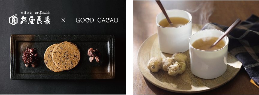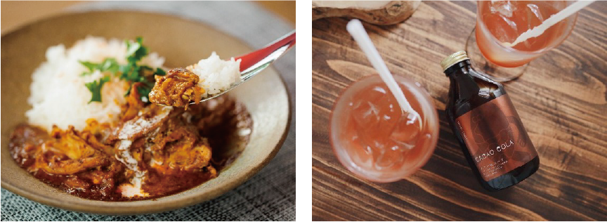 カカオハスクを余すことなく活用し、世界の食品ロス問題へ一石を投じることができないかと開発され、サステナブルなアップサイクル食として2022年に京都で誕生したのが「GOOD CACAO」シリーズです。一時は入荷待ちの商品が出たほど人気で、カカオの香りや深みをうまく活用した「カカオカレー」シリーズ、カカオの香りと芳醇な味わいを楽しめるクラフト仕上げの「カカオ生コーラ」と「カカオジンジャーレモン」、京都の老舗和菓子屋の「京菓子司 亀屋良長」がレシピ監修した「カカオ京せんべえ」など多くのヒット商品が生まれています。