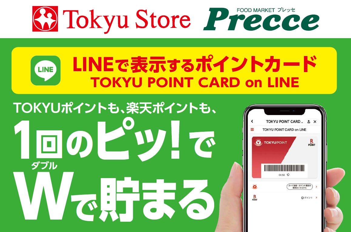 東急株式会社(以下、東急)と株式会社東急ストア(以下、東急ストア)は、TOKYU POINT機能付きの各種カードを、LINEのアプリから表示し、東急ストアが展開するスーパーマーケット「東急ストア」「プレッセ」全90店で、ポイントが貯まる・使える「TOKYU POINT CARD on LINE」(以下、本サービス)を、2022年5月10日(火)から開始します。
