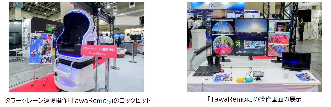 竹中工務店、鹿島建設、アクティオが共同開発をしたタワークレーンの遠隔操作が可能な「TawaRemo®(タワリモ)」を展示しました。従来、長時間拘束され、かつ、ビルと同じ高さにある運転席まで梯子を使って昇降する必要がありましたが、本商品を使用することでオペレーターの人員確保や安全に寄与することが期待されています。