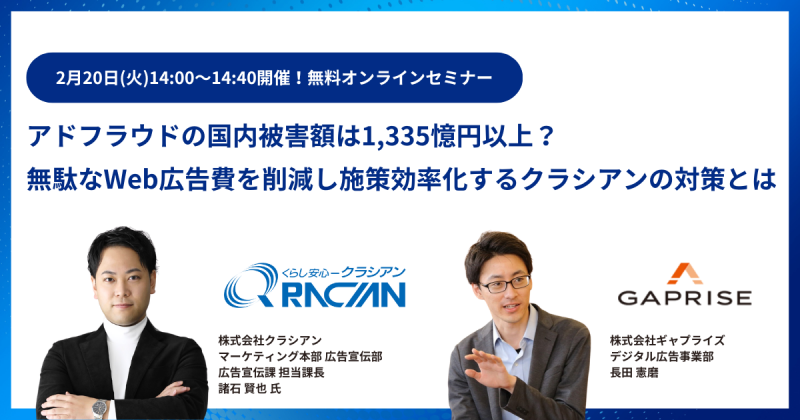 無料公開セミナー「アドフラウドの国内被害額は1,335億円以上? 無駄なWeb広告費を削減し施策効率化するクラシアンの対策とは」の開催