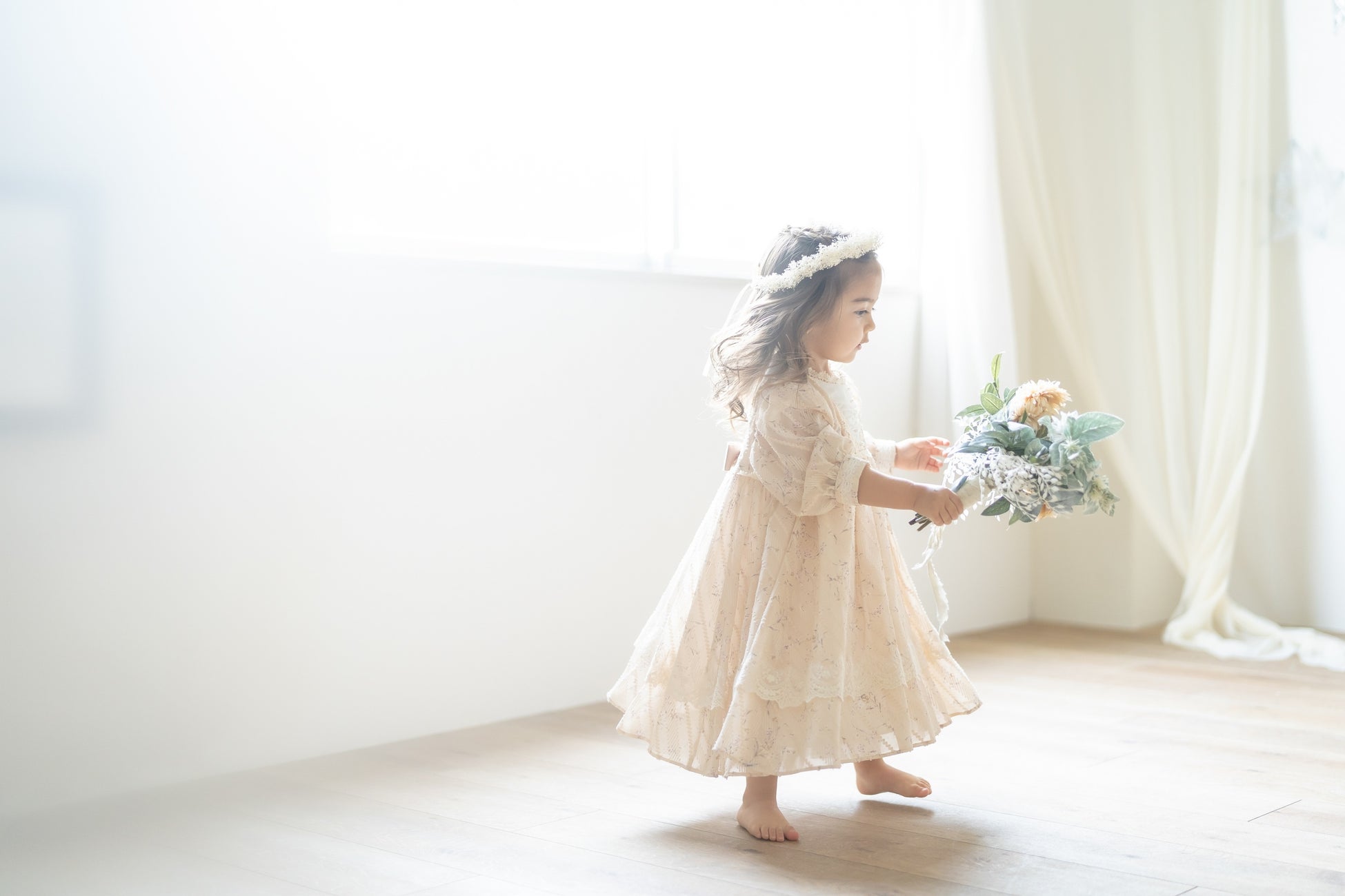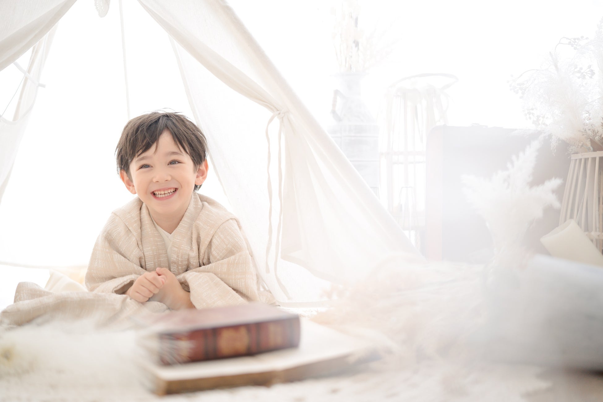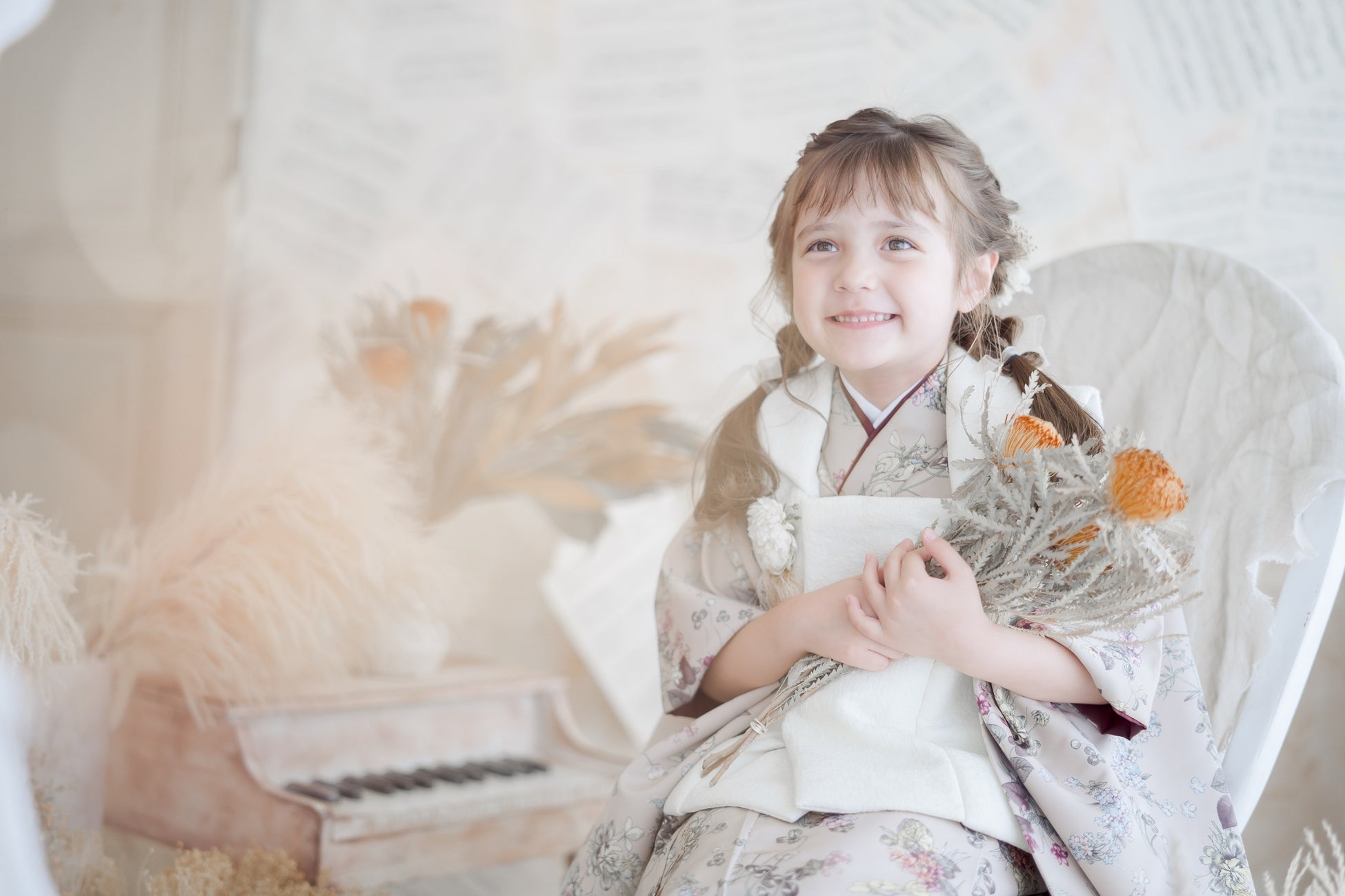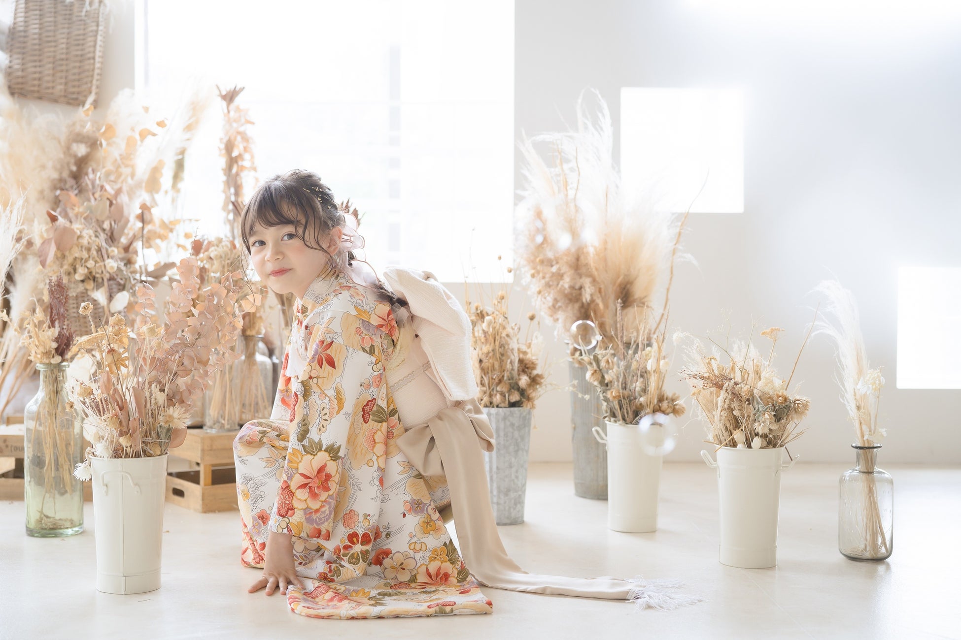 ~お子さまの成長の節目は、ゆったりと時間が流れるプライベート空間で。⾊合いにも質感にもこだわったコフレオリジナルのお⾐装で七五三やバースデーフォト、お食い初めなども~
