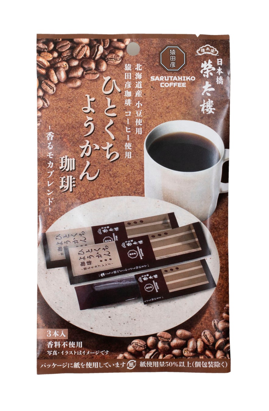 商品特長 :猿田彦珈琲が厳選したコーヒーを、榮太樓伝統の煉羊羹と合わせました。コーヒーの豊かな香り、風味、コクを存分に感じていただけるよう、 職人こだわりの餡のバランスで味わい深い上品な羊羹に仕立てました。