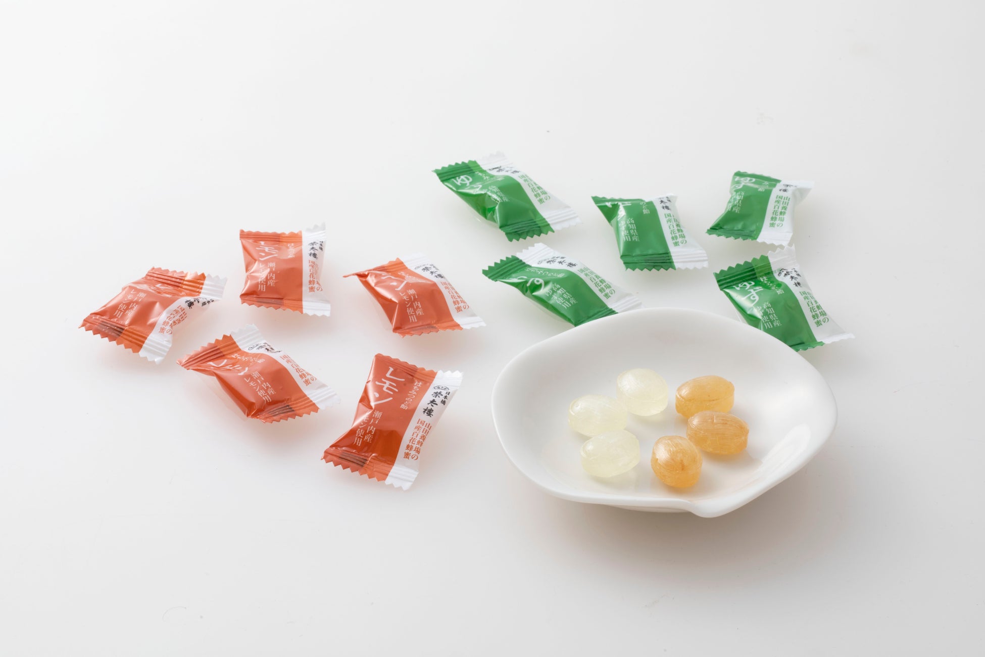 商品特長 :山田養蜂場の国産百花蜂蜜使用。はちみつのまろやかな味わいと、温暖な気候で育てられた柑橘の香りが相性の良い組合せ。高知県産ゆず果汁を使用した飴と、瀬戸内産レモン果皮を使用した飴の2つの味をお楽しみいただけます。