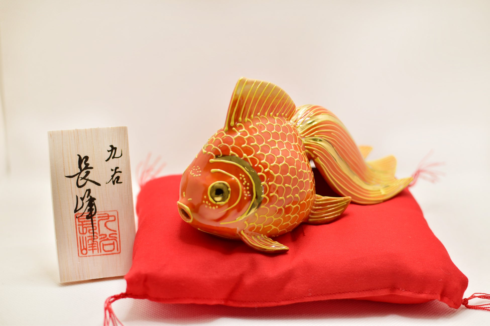 九谷焼の特徴である色鮮やかな色彩で絵付けされた、縁起物“金魚”です。