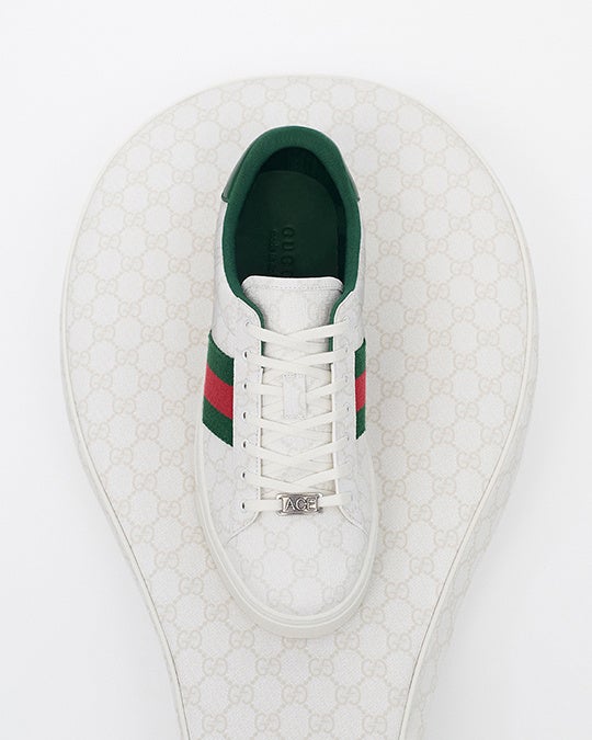 伝統と現代性を融合したこの特別なセレクションは、1970年代のアーカイブからインスピレーションを得て、グッチとテニスの世界との長年にわたるつながりに敬意を表しています。当時グッチはアクセサリーやシューズを中心に、テニスに関連した製品ラインナップを拡大していました。ラグジュアリーブランドが手がけた初のスニーカーのひとつであるアイコニックな〔グッチ テニス 1977〕もその頃に誕生したものです。テニスのテーマは1980年代にはウェアへと広がり、アスリートやテニス愛好家に人気を博しました。