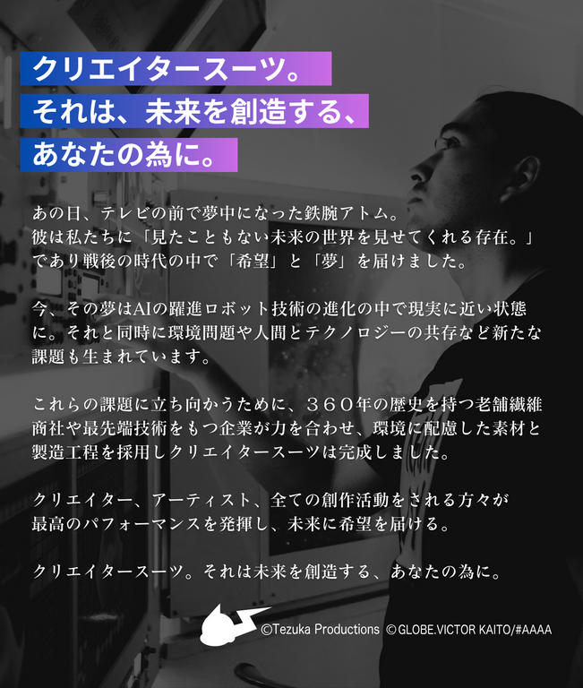 【NEXT ATOM for the future Produced by #AAAA】「軽さ・タフさ・動きやすさを実現! 最新技術を詰め込んだクリエイタースーツ」を、makuakeにて限定販売開始
