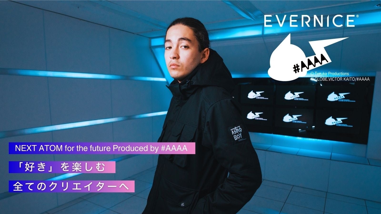 ⼿塚治⾍が描いた21世紀の未来の中で、アトムは2003年に誕⽣し、2023年は20年の記念すべき年であり、アニメーション化 60周年を迎えました。これを記念して、株式会社⼿塚プロダクション監修のもと「NEXTアトム 〜これからの20年 〜 」「未来へつなぐ『ASTRO BOY』」をキーワードに、【NEXT ATOM for the future Produced by #AAAA】がスタート。Victor Kaitoが担当したキーグラフィック・アートを使⽤し、世界的な靴の職⼈によるアート作品や⽇本の伝統⼯芸品やゴルフウエア、アパレル、帽⼦、デニム⼩物などを作成。このプロジェクトは今後も展開していく予定です。