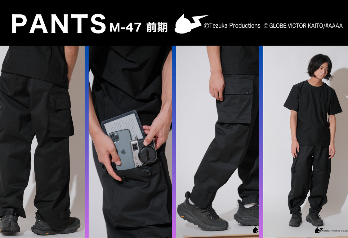 パンツは、フランスで誕生したミリタリーフィールドカーゴパンツM-47前期のデザインを忠実に再現。綿の風合いを出す為に紡績の段階からこだわったため、履き心地もばっちりです。