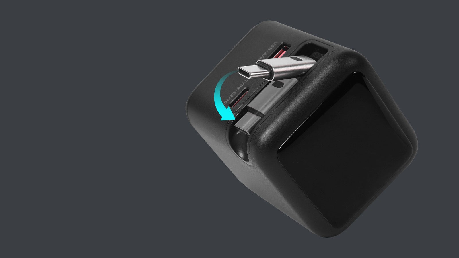 内蔵されているUSB-Cケーブルの他に、もう1つUSB-CポートとUSB-Aポートを搭載。