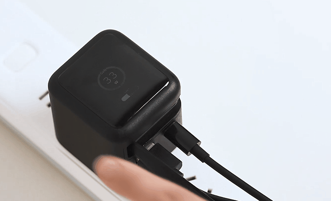 本体に搭載されたTFTディスプレイで、現在の充電出力(W数)をリアルタイムに表示。
