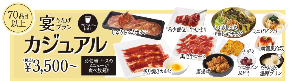 【焼肉宴会3,500円~】忘年会やご家族でのお食事などにピッタリ!予約限定の焼肉食べ放題「宴プラン」を販売