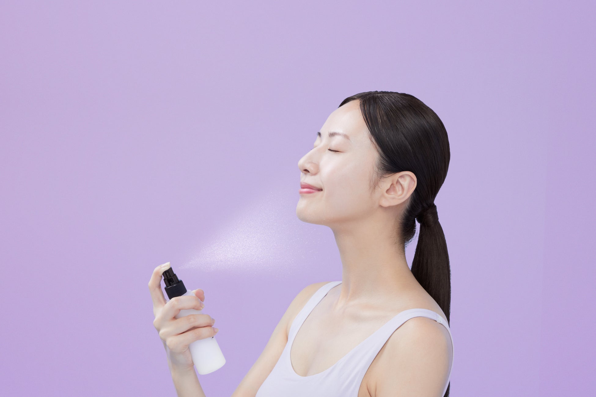 まずは半顔に吹きかけ、顔の変化を感じてみてください。