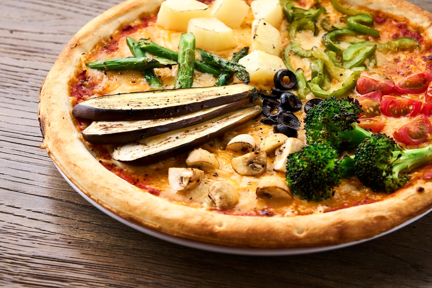 当店は、地球の未来と環境、そしてお客さまの健康を第一に考え、プラントベースにこだわったVEGANメニューを提供します。当店イチオシのピザ「The VEGAN」は、彩り鮮やかな8種類の野菜をたっぷりと使用し、ピザ生地からチーズまですべて植物性由来の素材を使用。また、VEGANメニュー以外にも、マルゲリータやディアボロなどの本格ナポリ風Pizza、ナゲットやフライドポテトなどの定番サイドメニューをご用意しています。