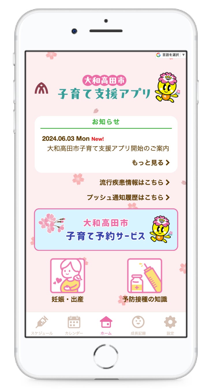 今後は、母子健康手帳交付、産後ケア利用申請、親子歯科健診等の「オンライン予約機能」のほか、大和高田市からのお知らせを月齢・年齢にあわせてタイムリーに受信できる「メール配信・プッシュ機能」、成長グラフや乳幼児健診の記録など母子手帳の内容をマイページに記録できる「電子母子手帳 機能」、予防接種漏れや接種間隔ミスを防ぐことができる「予防接種AIスケジューラー」、複数言語に対応する「多言語翻訳機能」など、ICTを活用した子育て世代への継続的なサポートを実現します。