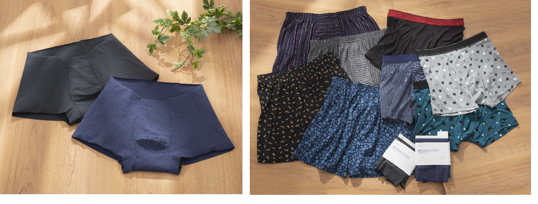 「リクリーンインナー」は男性のお悩みを解決できるよう吸水性や速乾性など優れた機能性に特化しつつ、豊富なデザインやカラーを展開しました。すべての男性にいつものおしゃれを楽しんでいただきたいという想いが込められています。