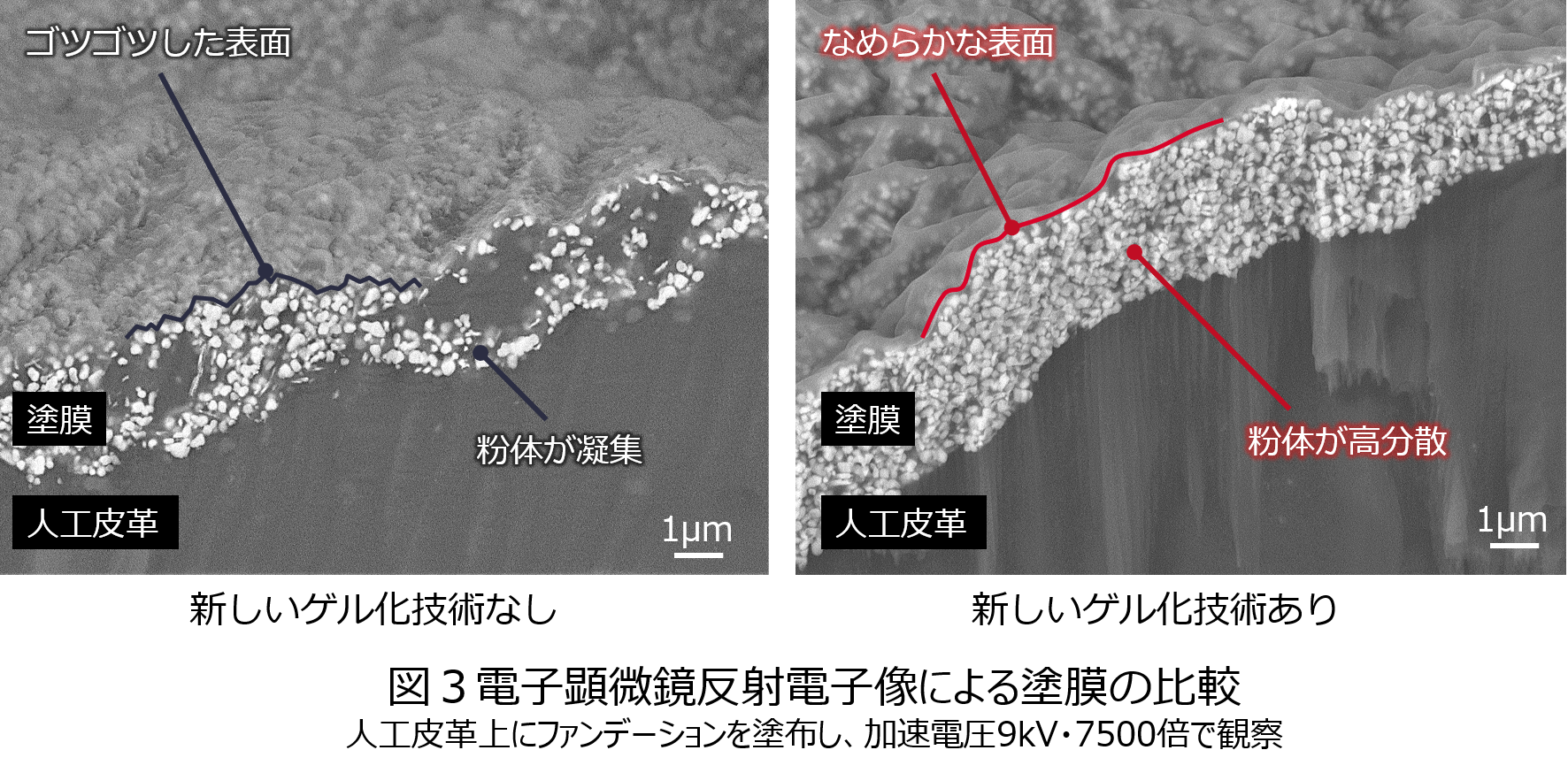 今回、花王独自の素材※1を用いて、高分散した粉体を包み込むことができるぷるぷるのゲル(図2)を形成させる技術を開発しました。