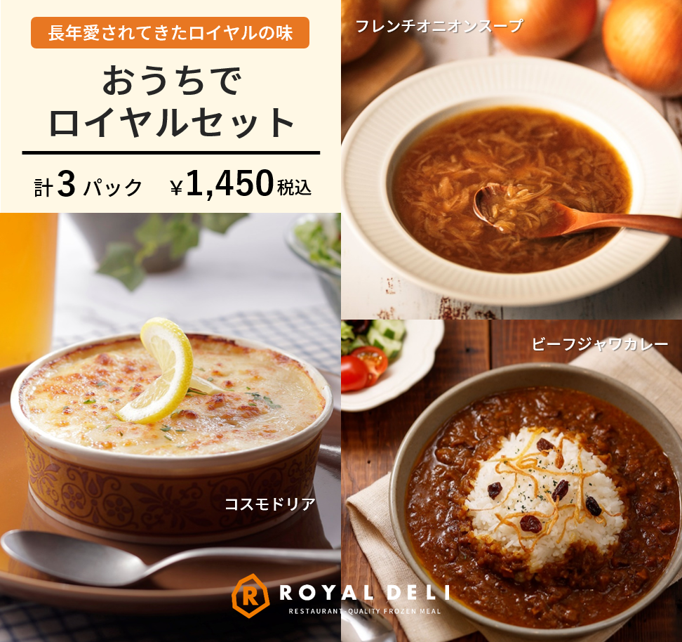 食のライフスタイルが多様化した今、新しい生活様式に対応しつつ、自宅でのひとときやおもてなし、大切な人への贈り物に、レストランの美味しさを急速冷凍技術で閉じ込めた家庭用フローズンミール「ロイヤルデリ」で、「日常の中で、手軽で豊かな食事時間」をお過ごしください。