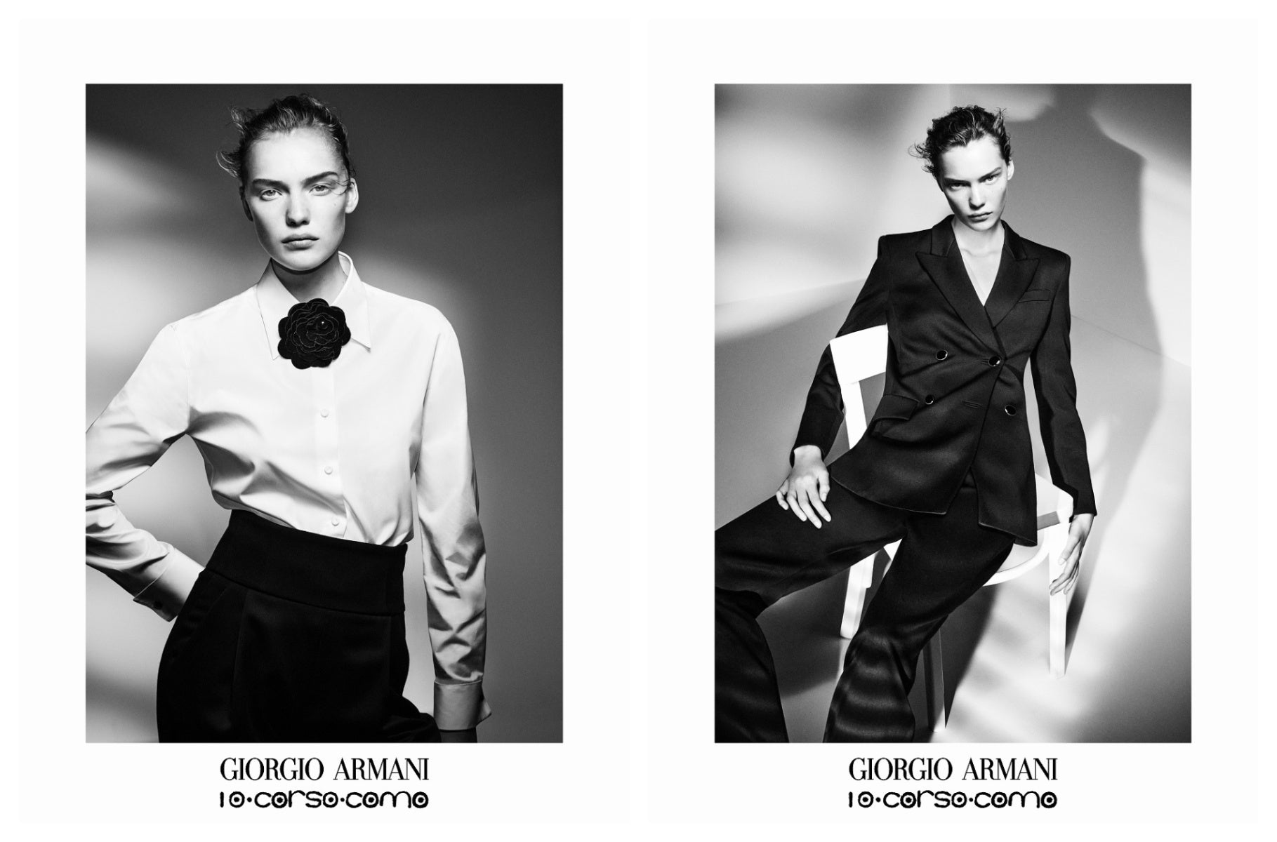 エターナルな魅力を放つブラック&ホワイトカラーで統一されたこのコレクションは、アルマーニの世界観を存分に感じて頂ける仕上がり。1980年代のGIORGIO ARMANI広告ビジュアルからインスピレーションを受けデザインされたアイテムの数々は、決してぶれることのないブランド哲学を保ちながらもモダンなムードを醸し出しています。