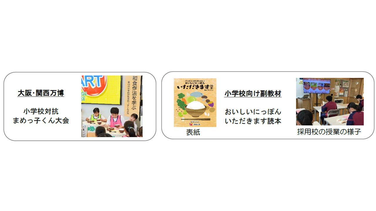 具体的な取り組みとして、和食の作法を学ぶ「豆つかみゲーム小学生公式大会」や「黒豆栽培体験」を10 年以上にわたり継続開催してきました。(※「豆つかみ大会」はコロナ禍以降休止しておりましたが、本年の「大阪・関西万博」にて6 年ぶりに復活しました)