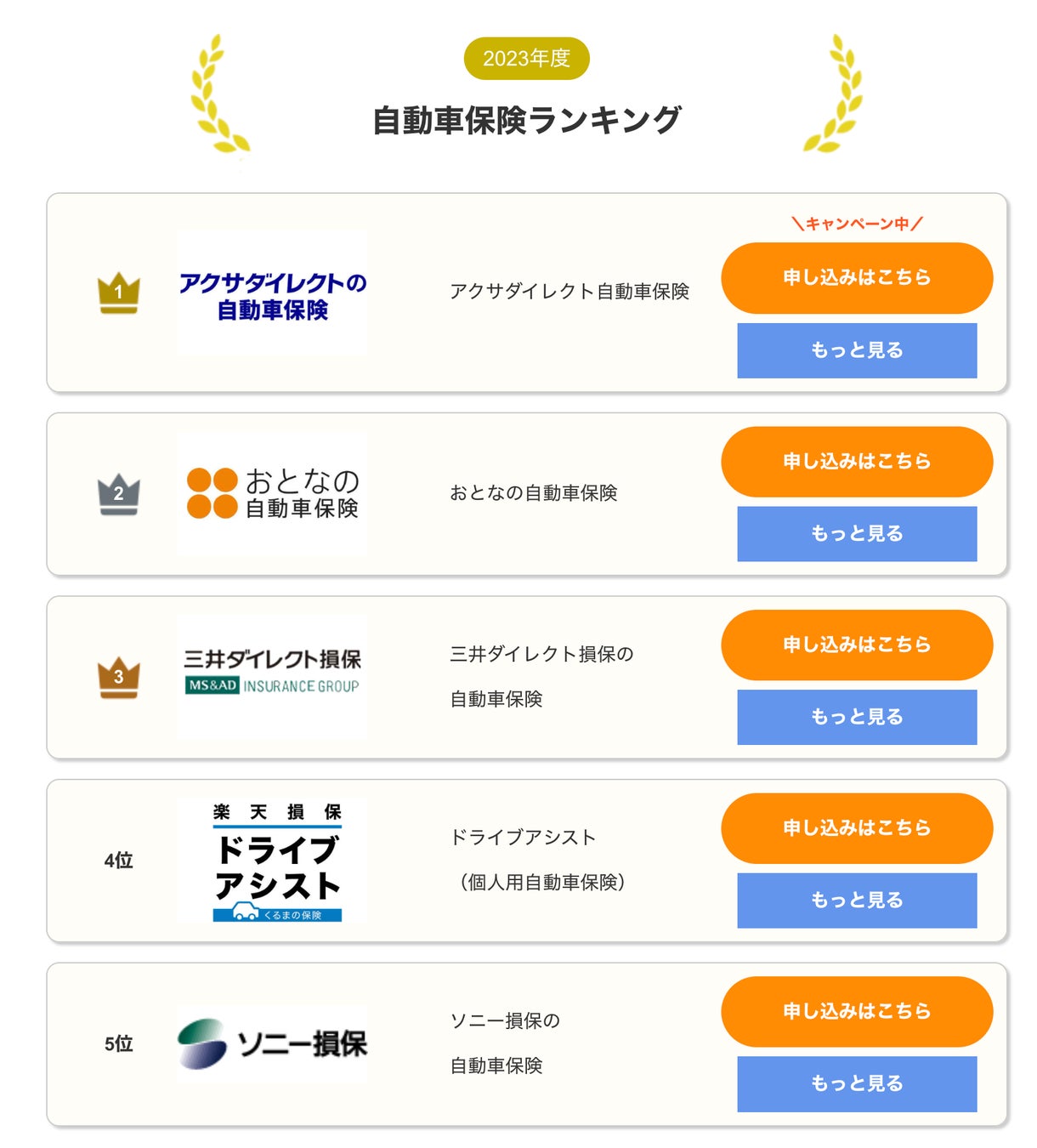 ■【2023年最新】自動車保険おすすめ人気ランキングTOP5: https://car-h.info/ranking-2/