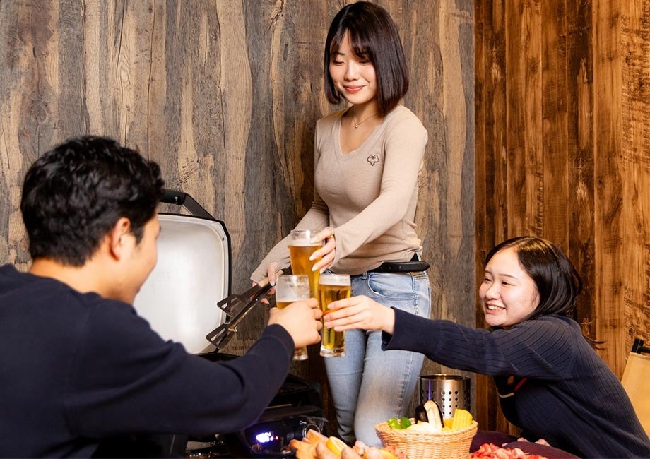 また、お天気に左右されない全天候型・屋内グランピング&バーベキューレストランですので、気温が高い日には涼しく!雨の日には雨具が不要!な室内で、いつでもアウトドア気分を身近に感じることができます!