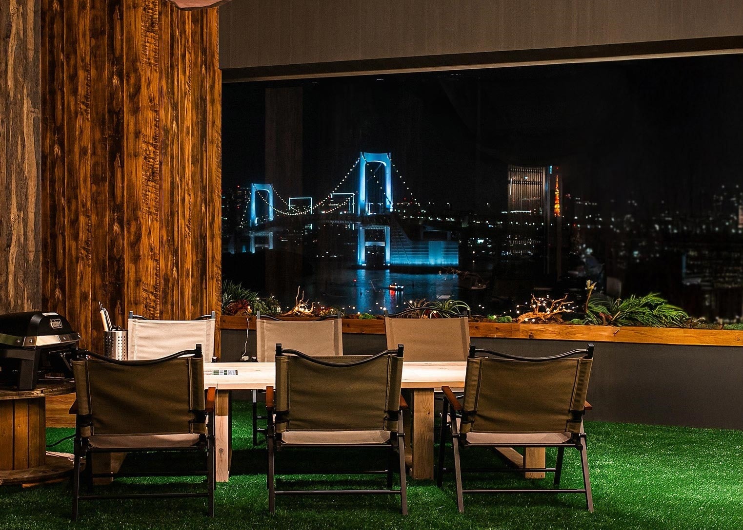 お台場・デックス東京ビーチ 5Fの【WOOD DESIGN PARK ODAIBA TOKYO(ウッドデザインパーク オダイバ トーキョー)】(以下、ウッドデザインパークオダイバ)では、東京タワーやレインボーブリッジなど、東京を代表する景色が一望出来るロケーションで、インドアながらも本格的なBBQ体験を春夏秋冬いつでもお楽しみいただけます!