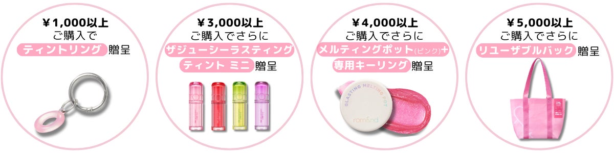 例:5,000円以上ご購入された方には、ティントリング~リユーザブルバックまで全て贈呈