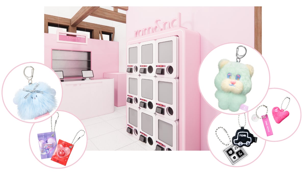 さらにガチャゾーン(※3)では、rom&ndオリジナルキーリングから、限定コラボグッズまでゲットできます。ピンクオフィスで購入したリップにティントリング(※4)+ガチャキーリングを付けて、自分だけのリップを完成させましょう!