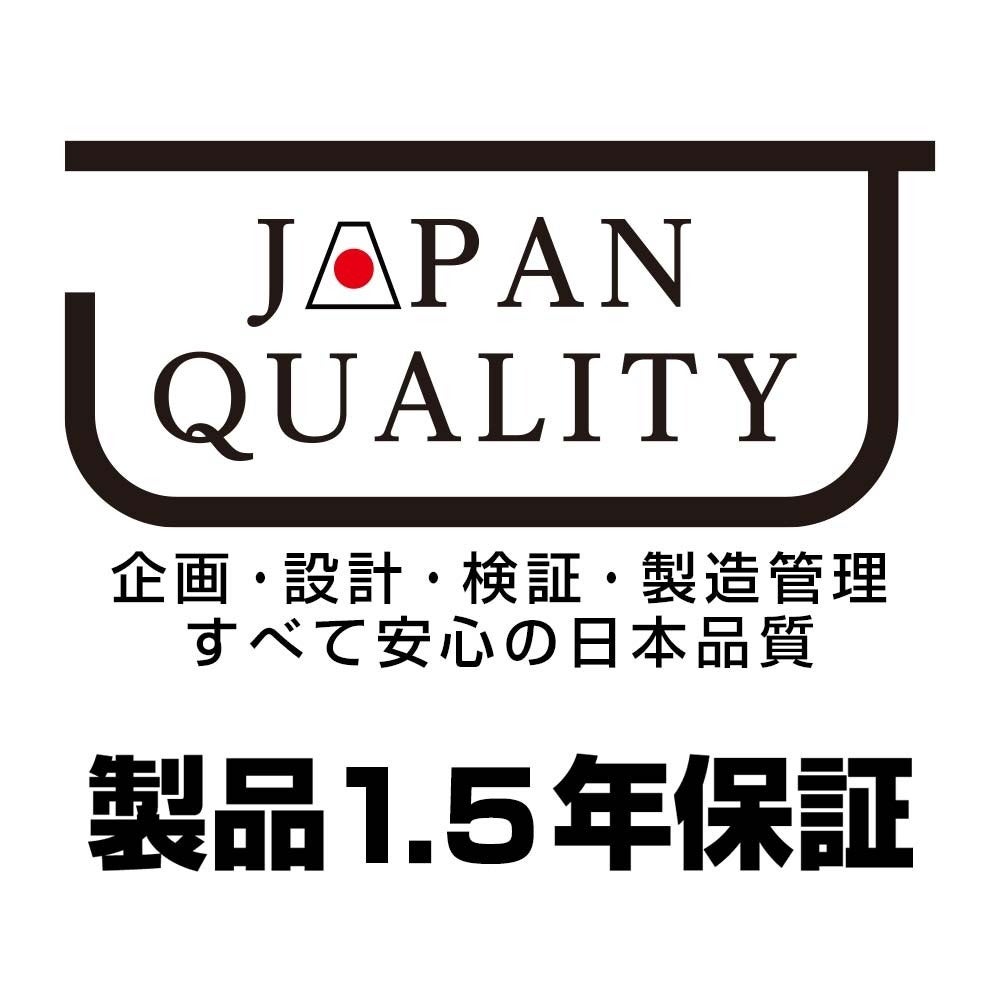 本製品は1.5年保証がございます。ご使用中に万が一不具合などが発生した場合、保証期間内であれば無償で交換を保証いたします。お客様が安心して長くお使いいただける製品品質と併せて、サポート体制にも力を入れております。