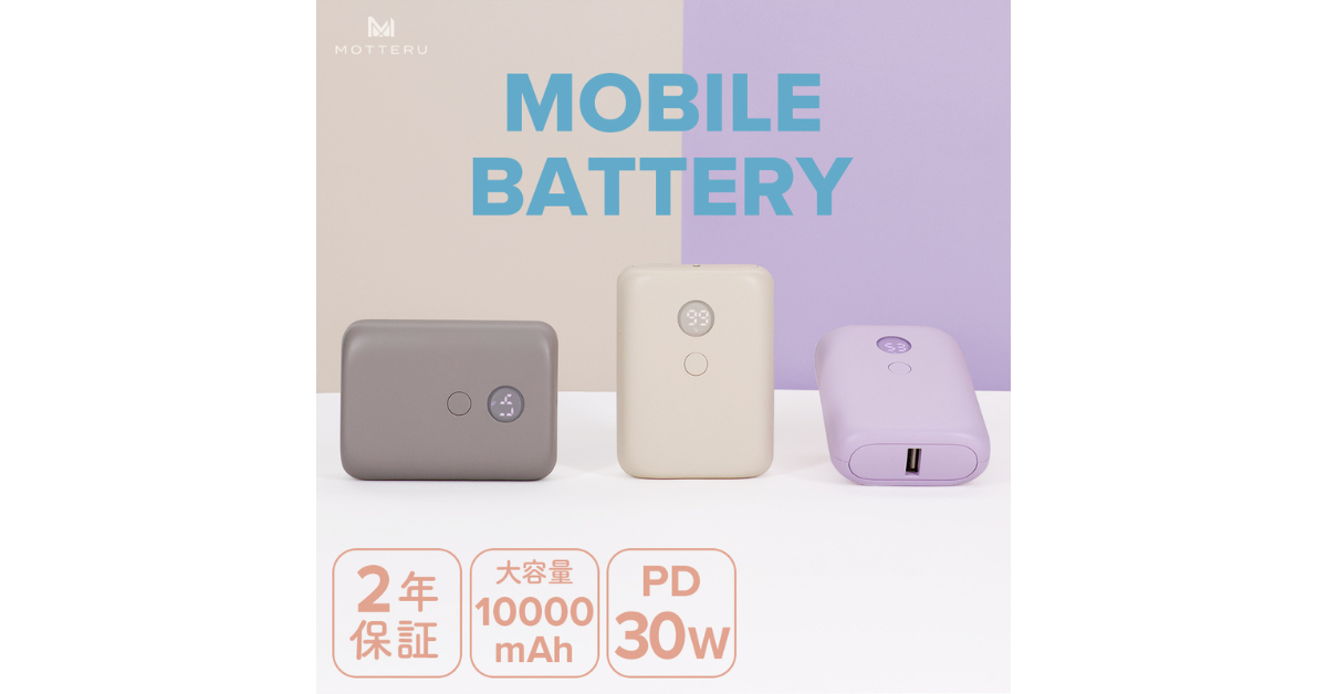 株式会社MOTTERU(モッテル)(本社:神奈川県海老名市、代表取締役:櫻田良太)は、残量表示機能付きのPD30W入出力対応、10,000mAhモバイルバッテリーを2024年9月10日(火)からMOTTERU公式オンラインショップ含むECモールで販売を開始します。
