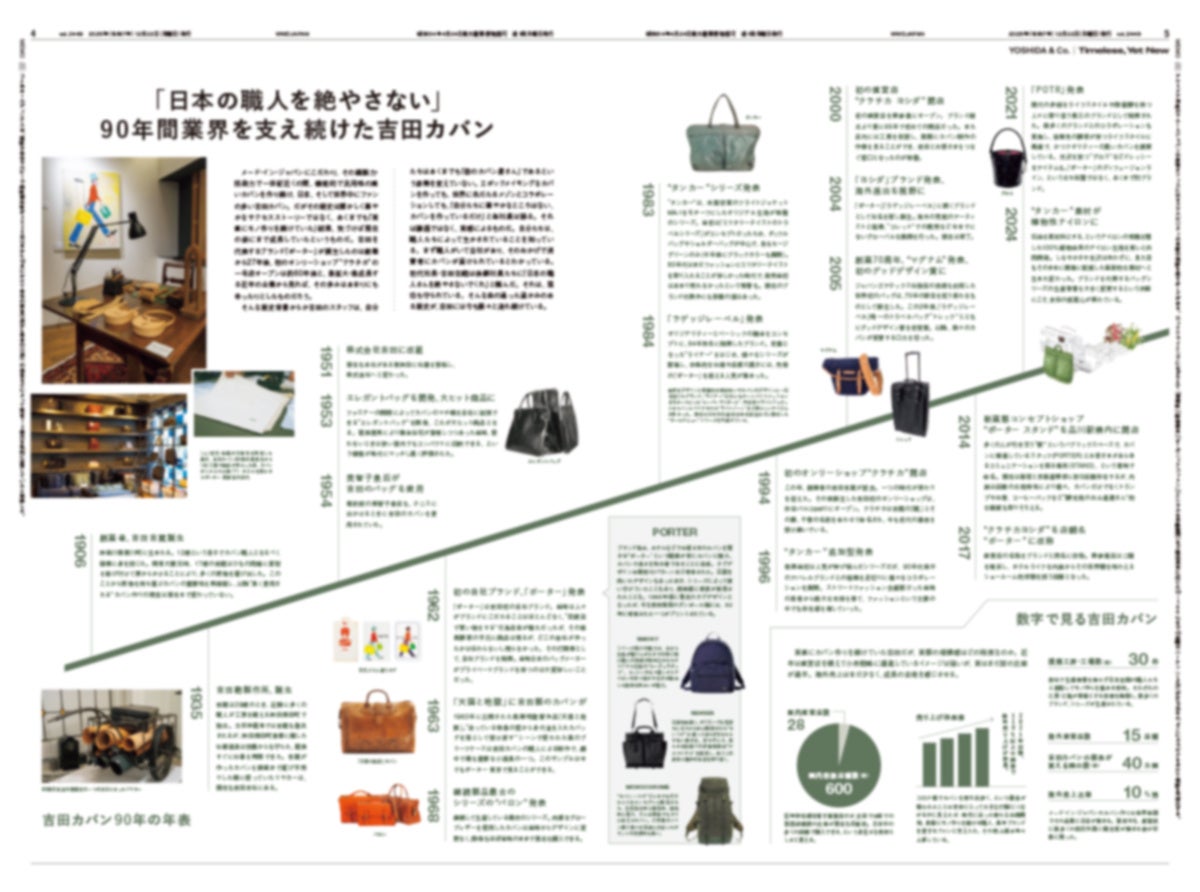 「WWDJAPAN」12月22日&29日合併号は、創業90周年を迎えた吉田カバン総力特集です。「ポーター(PORTER)」「ラゲッジレーベル(LUGGAGE LABEL)」「POTR」の3ブランドを擁し、日本を代表するカバンメーカー・吉田のモノ作りに迫ります。