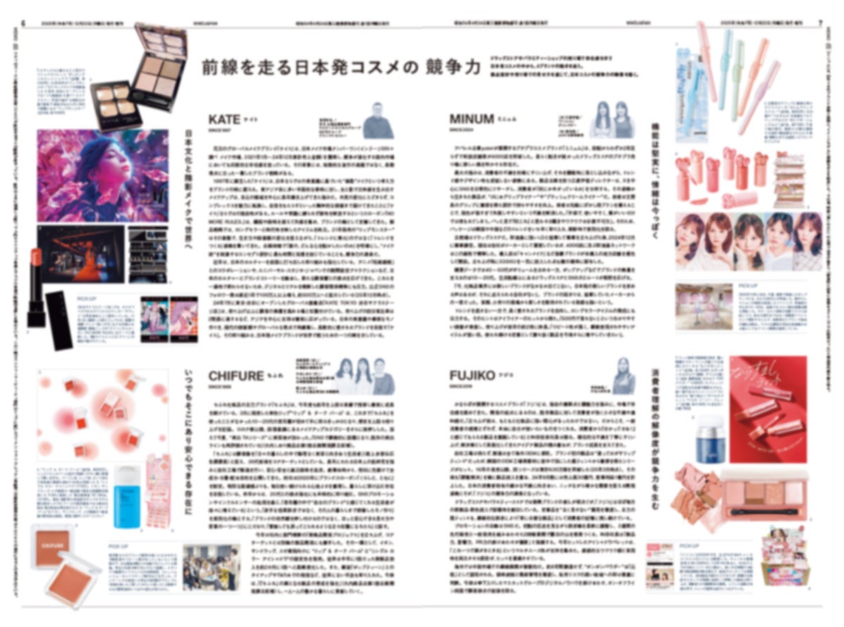 ドラッグストア・バラエティーショップで存在感のある「ケイト」をはじめ、新進気鋭の「ミニュム」など4ブランドをケーススタディに、その競争力の輪郭を描きます。さらに、長年化粧品業界を見続けてきた竹岡篤史氏へのインタビューを通じ、日本の化粧品産業が抱える構造課題と可能性を整理します。日本市場はいま、転換点に立っています。本特集では、ビューティチーム総力戦で足元の実態を多角的に掘り下げ、日本化粧品の次の成長に向けて必要な視点を提示します。