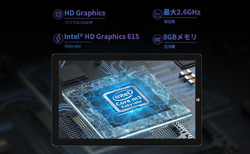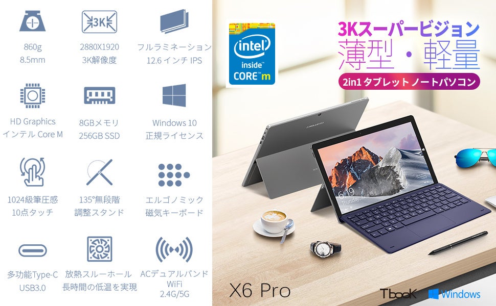 Teclast「X6 Pro」はIntel高性能Core M 7Y30プロセッサを搭載しています。パフォーマンスが主流の薄型軽量ノートパソコンに匹敵します。 8GB容量の低電力実行メモリにより、より多くのプログラムを同期的かつ迅速に実行できます。 内蔵の256GB高速ソリッドステートドライブストレージで、読み取りと書き込みの高速化、効率を向上することができます。