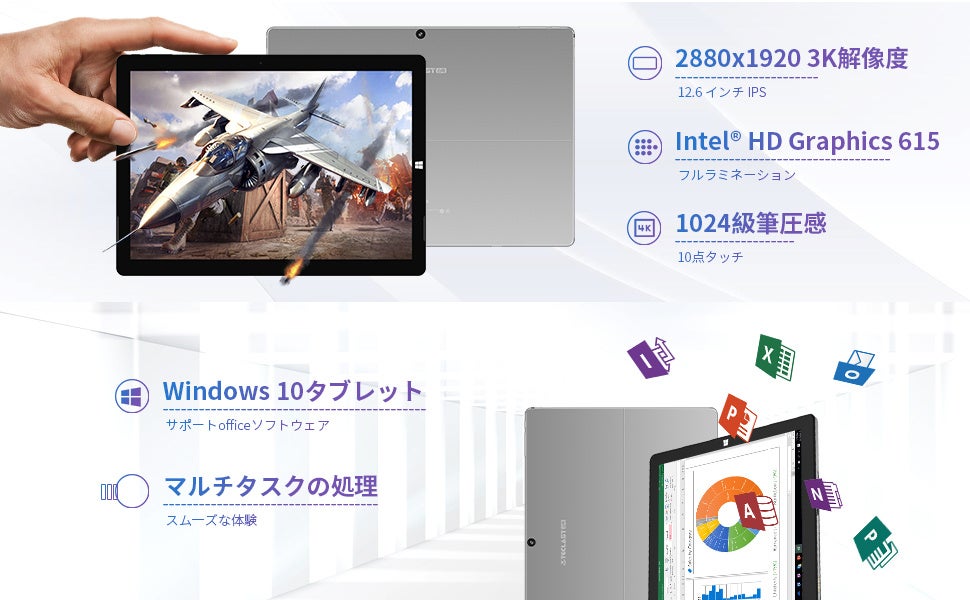 12.6インチと2880*1920 3K解像度を備えたIPSスクリーンで、ちょうどいい視野角度を提供できます。最大85%NTSC、121%sRGBカラーガマット表示機能により、画面表示がより繊細でカラフルになります。 完全なラミネーション技術、10ポイントのタッチスクリーンとアクティブスタイラスと組み合わせて、1024レベルの感圧式手書きを実現できます。