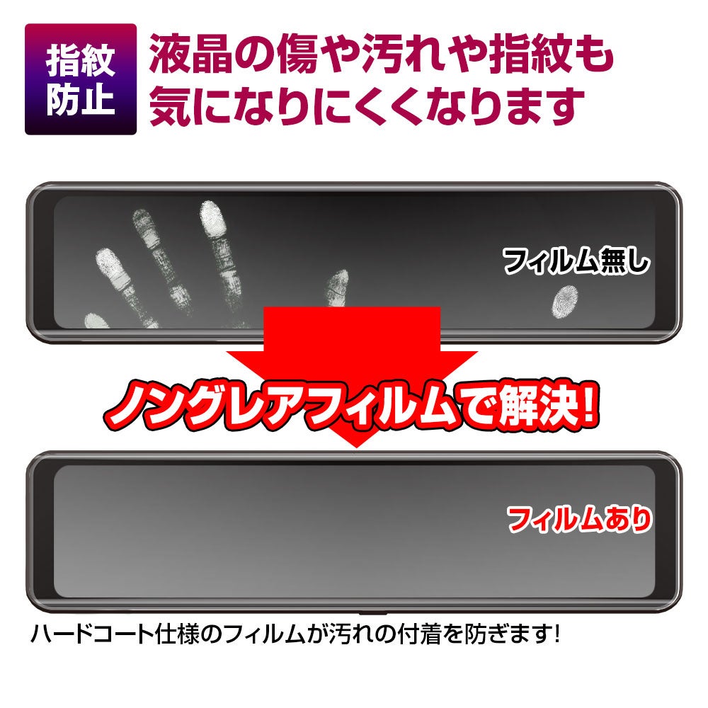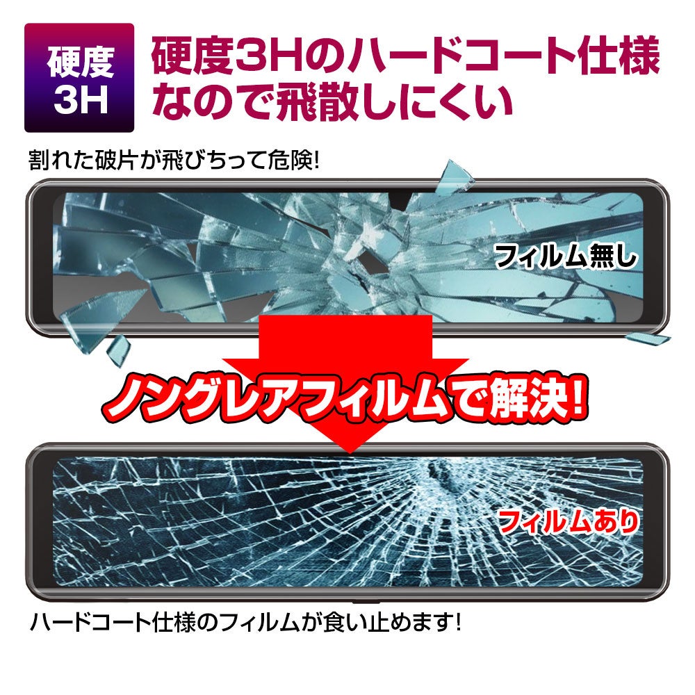ハードコート仕様のフィルムが指紋の付着や破片の飛び散りを防ぎます。