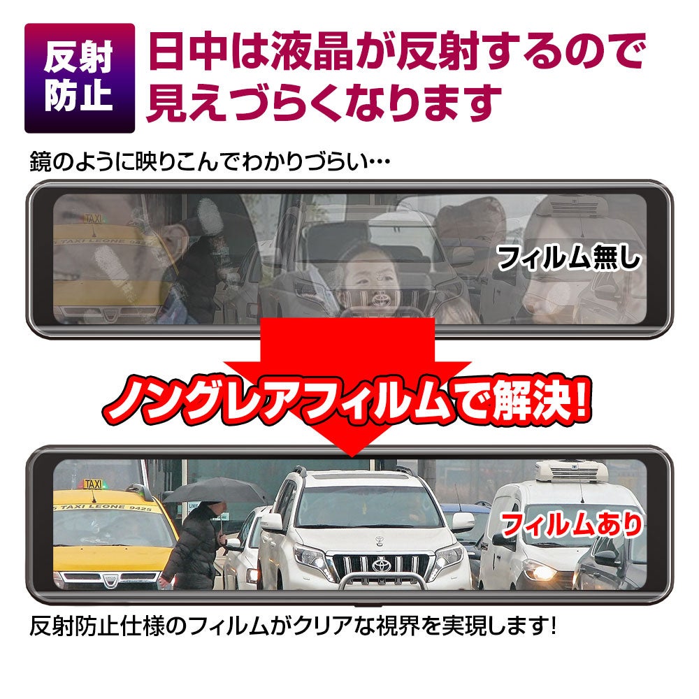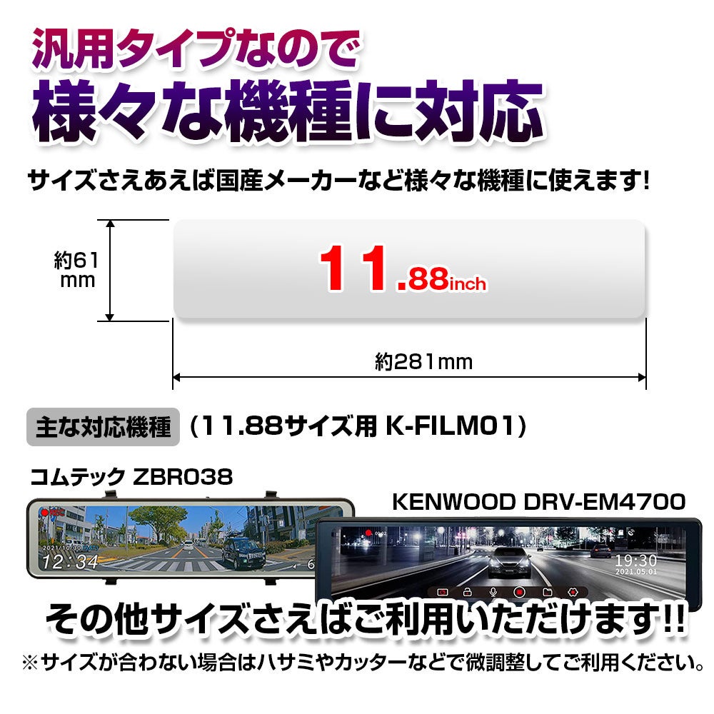 汎用タイプの保護フィルムなのでサイズさえ合えばどんなメーカーのデジタルミラーでも使用できます。